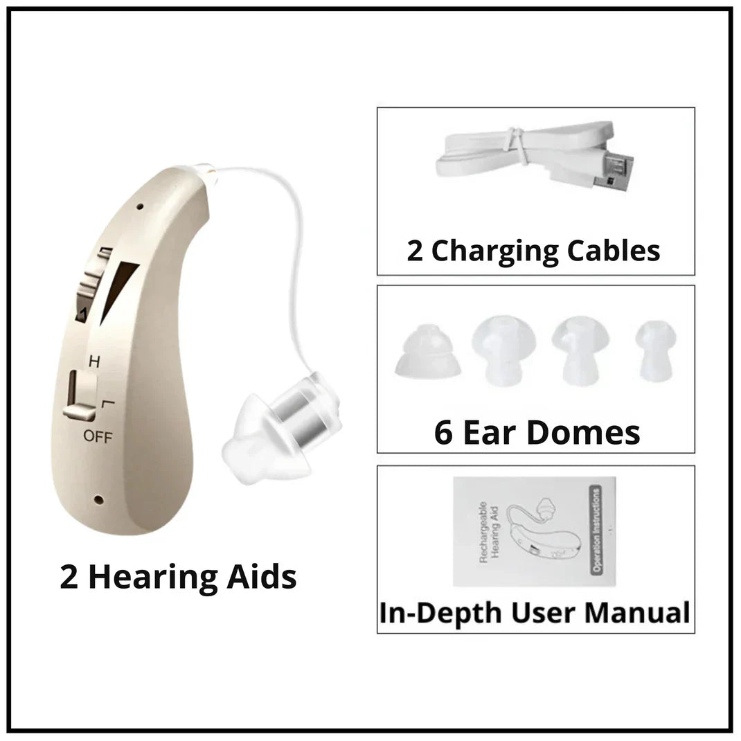 •A complete and in-depth user manual that covers all you need to know about your new hearing aids, including correct setup and care, achieving a perfect in-ear fit, modifying the hearing support to your particular needs, and much more!